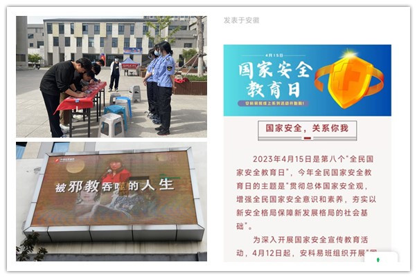 学生处同步通过“安科学工”公众号、“安科易班”等网络平台对国家安全知识进行专题推文。4月15日,各二级学院结合《通知》要求开展“千万师生同上一堂国家安全教育课”等全民国家安全教育主题活动。