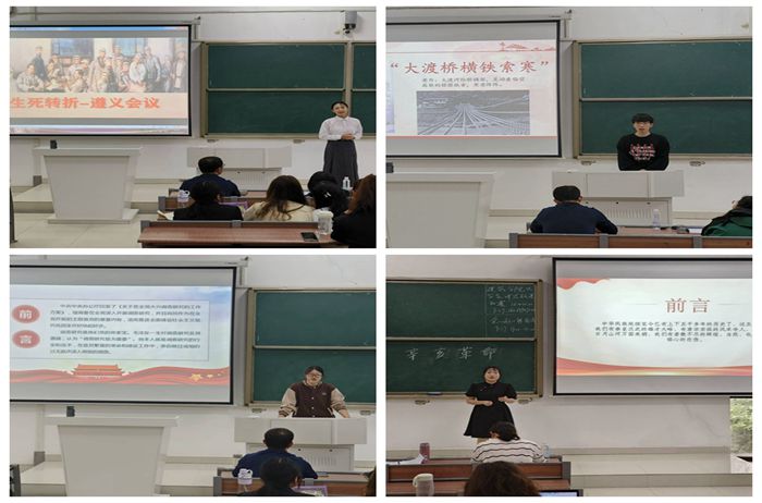 13支参赛团队主讲人以“新思想引领新征程•新青年建功新时代”为主题,结合6门思政课程有关章节进行课程设计,围绕“坚持中国特色社会主义文化自信”“立国之战-复兴之路上不朽的丰碑”“新时代下毛泽东思想活的灵魂引领新征程”“美美与共,天下大同”“培爱国情怀 学革命精神—忆辛亥革命一百一十二周年” “永不褪色的‘红手印 ’” “讲好伟人调研故事,感悟党的先进品格”等13个授课题目,通过借助PPT、板书、多媒体视频与情景剧表演等多种形式,进行了精彩展示。同学们努力用生动的语言、形象的比喻、鲜活的事例,以青年视角、用青年声音讲好中国理论和中国故事。