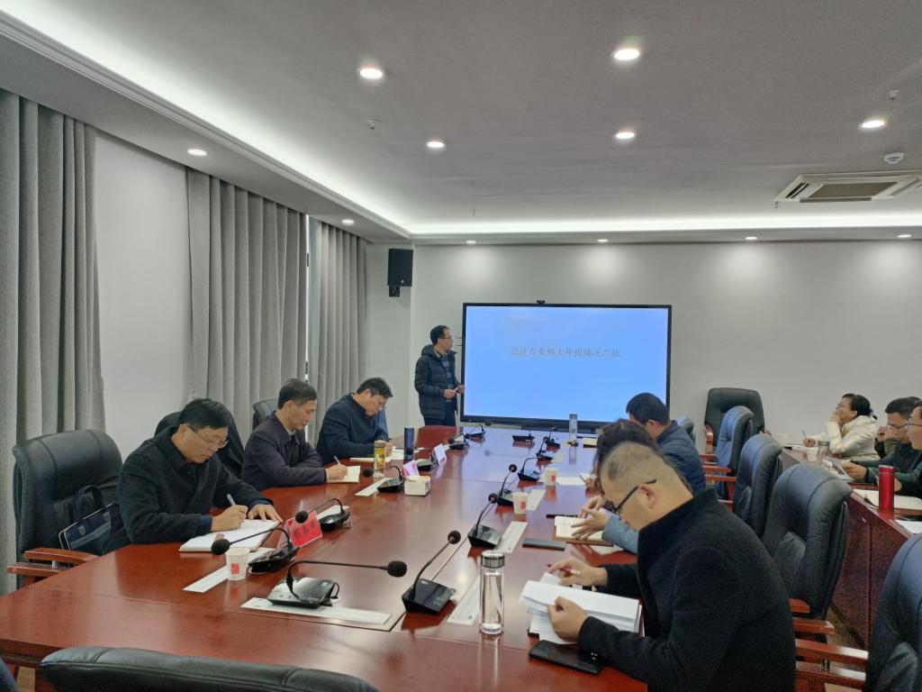 12月8日下午,校党委副书记、校长李震,校党委委员、副校长李升和及研究生处处长张春雨一行调研指导财经学院会计专业硕士学位点申报工作。财经学院党政领导班子成员,财管系、会计系全体教师以及学院所有副高以上教师参加会议,会议由财经学院院长郝世绵主持。