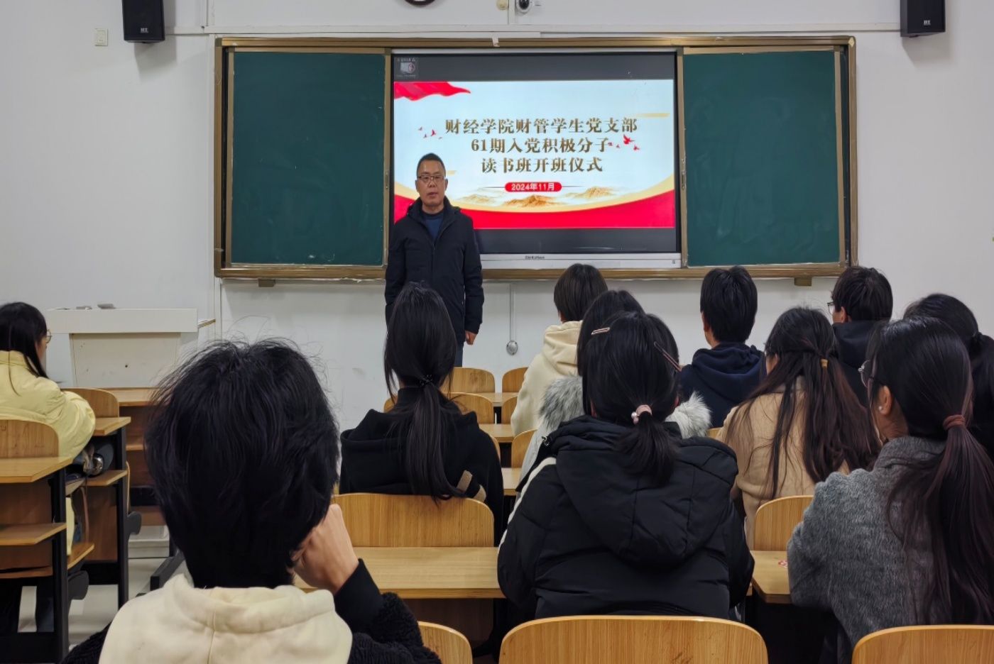 2024年11月,财管学生党支部联合党史国史铭传社打造的“才菁”读书班正式开班。开班仪式上,学院党委副书记、纪委书记耿广汉紧扣党的二十届三中全会精神,围绕“为何要读书”主题,系统阐述阅读对完善知识结构、开拓视野格局、提升政治素养的重要作用,并向学员推荐涵盖党史、经济研究等领域的50余本经典书目。他结合自身经验,提出“选、勤、活、思、用”五步读书法,号召党员和入党积极分子“走出手机世界,走进书香空间”,以系统阅读筑牢思想根基。财管学生党支部书记陆文斌带领学员深入研读《市场经济的中国之路》,引导青年将个人理想融入民族复兴伟业,永葆“改革青春底色”,在社会主义现代化建设中践行使命担当。