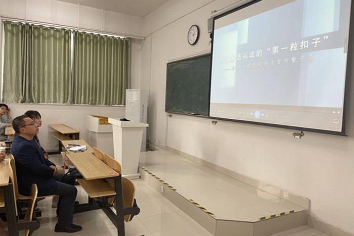 座谈会后,耿广汉、薛枫和与会人员共同观看了廉政警示教育片《扣好廉洁从政的“第一粒扣子”》。(特约通讯员:朱中军 摄影:何旭 审核:耿广汉)