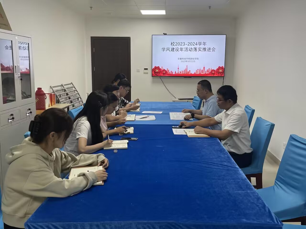 为深入贯彻落实全国教育大会精神,落实学风建设工作长效机制,9月28日上午,财经学院在西辅楼212会议室召开2023-2024学年学风建设年活动落实推进会。学院党委书记杜小明、党委副书记耿广汉及全体辅导员参加会议。会议由耿广汉主持。