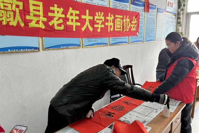 为弘扬“奉献、友爱、互助、进步”的志愿精神,传承中华传统文化,丰富老年文化生活,激发老年创作热情,1月23日,财经学院财务管理235班汪琪在安徽省歙县斗山区参与歙县老年大学书画协会活动。