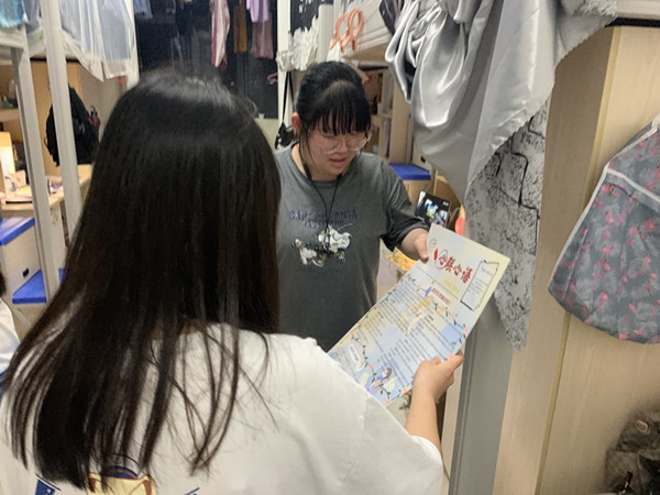 在走访过程中,为每个班级的寝室发放心理小报,与同学们拉家常,了解同学们的学习、生活状态,询问他们是否知晓学校心理咨询中心预约地址和预约方式,宣传普及心理健康知识,耐心解答同学们提出的问题,鼓励同学们积极关注自身心理健康状态,正确处理自身情绪。