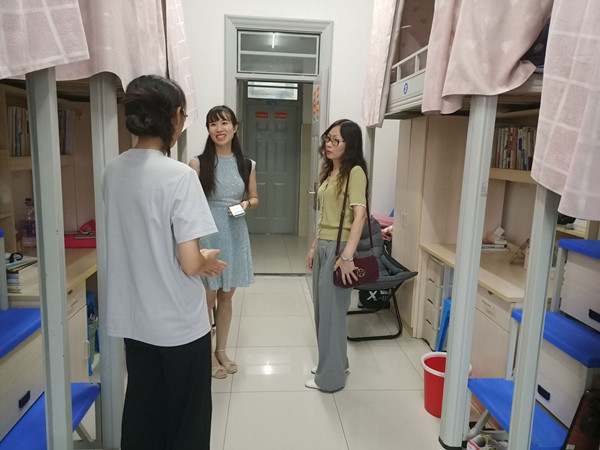 走访中,学院领导与返校学生进行了亲切交流,了解学生暑假学习生活情况,提醒学生要给父母报平安,返校后切实做好疫情防控常态化工作,进一步提高安全防范意识;注意用电安全、交通安全、个人财产安全等安全事项;鼓励学生们新学期要珍惜青春时光,合理规划大学生活,提高自律与独立生活能力,互助友爱,勤奋学习,学好专业课,为考研提前做准备,同时提醒学生们要注意身体健康,加强锻炼,努力改善宿舍卫生。