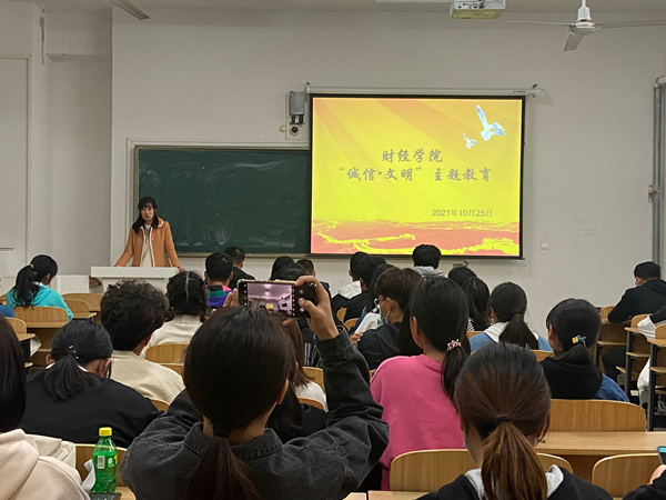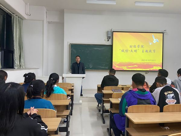 为培育和践行社会主义核心价值观,弘扬诚信文明传统美德,提高学生诚信文明意识,培养学生诚信待人、诚信处事、诚信学习、诚信立身的优秀品质,10月25日晚,财经学院在致知楼B109召开2021级学生“诚信·文明”主题教育动员大会。学院党委副书记、纪委书记耿广汉、专职辅导员季昌文出席会议。2021级各班团支委成员参加了会议。会议由学院团委书记薛枫主持。