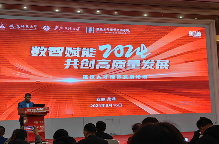 为进一步推动学科专业建设,促进商科专业数智化转型,3月16日,财经学院会计学教研室主任张淑英和财务管理教研室主任钟德仁两位老师参加了在芜湖举办的“数智赋能,2024共创高质量发展院校人才培养发展论坛”。此次会议由安徽师范大学和安徽工程大学主办、星空线上平台(集团)官方网站联合主办,新道科技有限公司承办。会议邀请安徽师范大学副校长熊宇杰、安徽工程大学副校长周虹屏、安徽商贸职业技术学院党委副书记王炜等以及新道科技的行业专家进行专题的分享。
