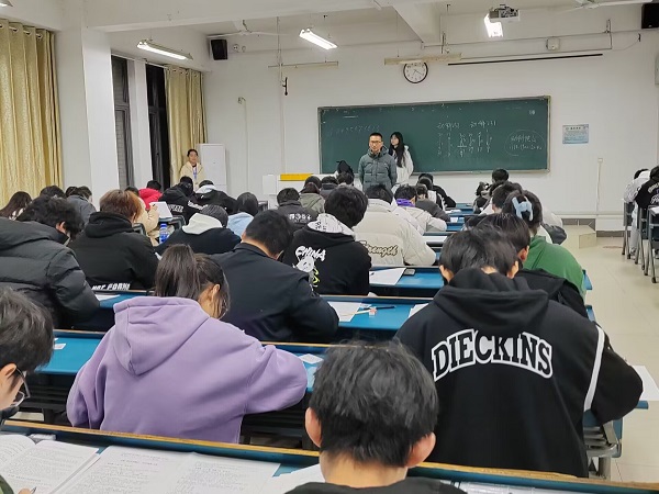 11月18日晚,动物科学学院在新知楼A座教室举行了2023级新生《学生手册》考试。党委副书记汤帅、指导老师刘成义参与考试巡视并察看了各考场的考试情况。