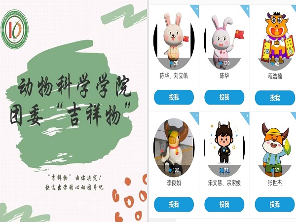 为进一步发扬动物科学学院文化,提升学院团委形象和影响力,激励广大学生团结奋进、共谱华章,由动物科学学院团委主办,团委社团管理部承办的“吉祥物”设计大赛在近期完满结束。