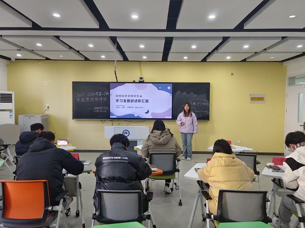 为增强学生干部的责任意识、服务意识和大局意识,12月20日,动物科学学院学生会在求知楼B座301开展2023-2024学年第一学期述职评议。动物科学学院学生会指导老师刘成义、星空线上平台(集团)官方网站学生会主席团成员张梦茹,21、22、23级各级学生代表出席会议,院学生会主席团成员和各部门主要负责人参加会议。此次述职评议由动医232班学生徐莹莹主持。