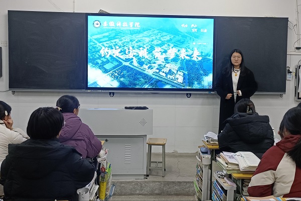 活动中,李梦媛与高中任课老师进行了细致的交流,通过多媒体展示、交流分享等方式向高三生介绍了我校的办学历史、师资力量、专业设置、校园环境等。李梦媛详细介绍了历年各专业的录取分数线,让同学们在未来填志愿时能有一个大致了解。最后,李梦媛同学祝愿学弟学妹们能在即将到来的期末考试和最后的高考中取得好成绩,并欢迎同学们报考我校。(摄影:陈诺、聂博睿)