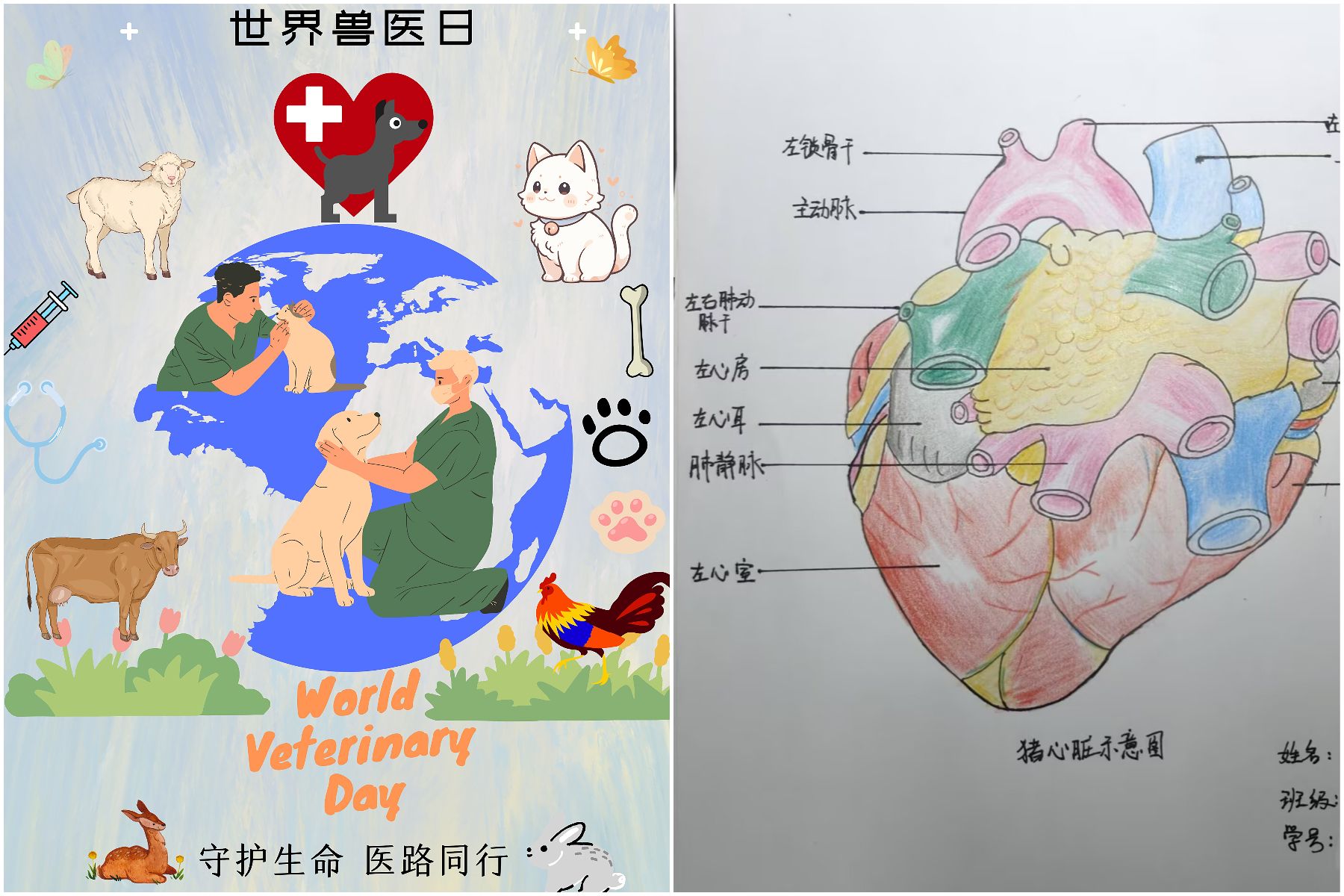 本次世界兽医日还开展了线上兽医主题作品征集活动,通过创作动物解剖绘图、兽医摄影作品、世界兽医日主题海报的方式,鼓励学生们通过艺术创作展现兽医风采。