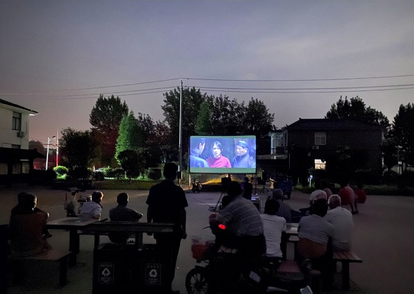 实践团成员到各自的家乡进行活动开展前的准备,在当地政府的大力支持下,他们对活动进行了宣传,同时借来了相关设备,在活动开始前进行设备调试和场地布置,晚上,居民们早早来到场地,观看了《建党伟业》《建国大业》《建军大业》《开国大典》等优质红色经典影片,这些电影从不同角度展示了党的百年光辉历程和伟大成就,带领群众回顾可歌可泣的峥嵘岁月,激发群众接续奋斗的壮志豪情。