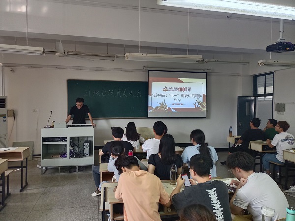 习近平总书记的重要讲话激励青年学生为中华民族伟大复兴矢志奋斗。各支部组织师生共同观看庆祝中国共产党成立100周年大会现场直播,认真聆听了习近平总书记的重要讲话,坚定共产主义理想信念,增强开拓前进的勇气和力量。