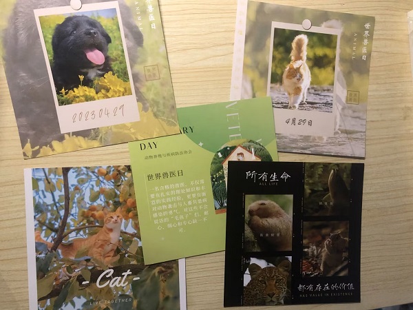 在此次活动中,动物养殖与疾病防治协会成员制作并分发了动物知识卡片,知识卡片以科普各种动物的特征和习性为基础,以科学养宠为题材,围绕爱护小动物、维护学校和社区环境,营造和谐校园的主题而设计,宣传兽医文化和精神,进一步增强同学们奋发成才、奉献社会的信心和决心。活动设有展板,供大家写下自己对世界兽医日的看法,提供了一个围绕世界兽医日主题的交流分享平台。宣传活动开展期间,值班人员热情地对世界兽医日的由来进行了科普与解答,同时为同学们普及兽医知识,积极宣传兽医从业者职业形象,加强了同学们的专业思想教育,坚定了同学们专业学习的信心,使同学们在未来学习和工作中更加具有强烈的责任感和使命感。