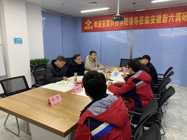 在安徽新六养殖有限公司,姚勇一行听取了公司总经理郭家明、太和公司经理周述刚关于公司发展、员工发展渠道及毕业生需求情况的介绍,姚勇感谢公司为毕业生提供良好就业平台,双方就加深人才培养合作等方面进行了深入探讨。