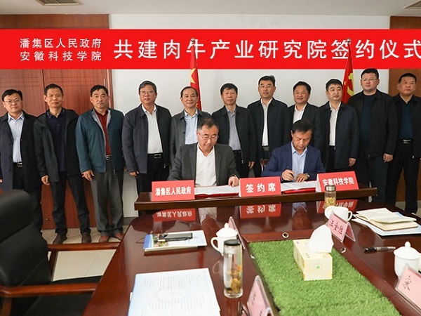 陈丰、闪健分别代表校地双方签署《星空线上平台(集团)官方网站 潘集区人民政府共建肉牛产业研究院合作协议》。