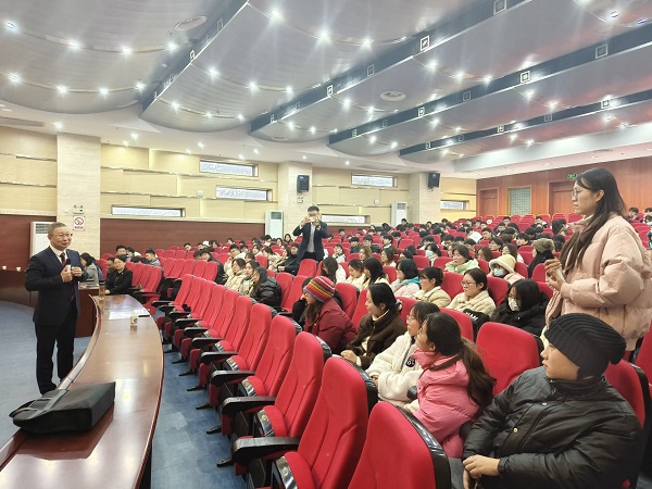 乔远涛从自身的人生经历谈起,细数了自己的大学时光以及毕业后在农牧行业工作的情景。同时,他还详细为学生分析了畜牧行业的发展形势,建议学生在校期间要广泛参与校内外社会实践,实现理论与实操结合,为自己以后成长成才打下坚实基础。最后,他寄语在座学生不忘选择农牧行业的初心,牢记自己为国家农业做贡献的使命。