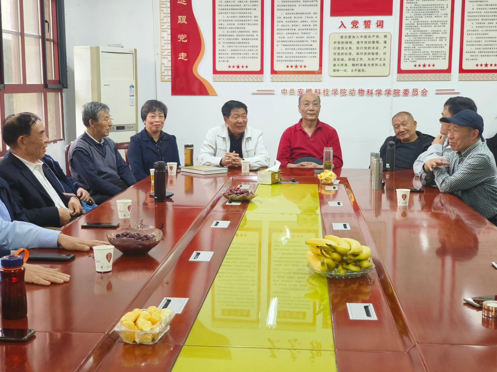 光阴荏苒风华在,学子情深返校园。4月13日下午,动物科学学院在西办公楼104室,举办牧医七七级二班老校友荣归母校座谈会。牧医七七级二班校友荣归母校,情聚校园,共同回忆他们在校园里的青春岁月,共叙母校的发展与进步。我校原理学院院长许万祥,动物科学学院党委书记、副院长程斌参加座谈会,座谈会由省农委原副主任周世其同志主持。
