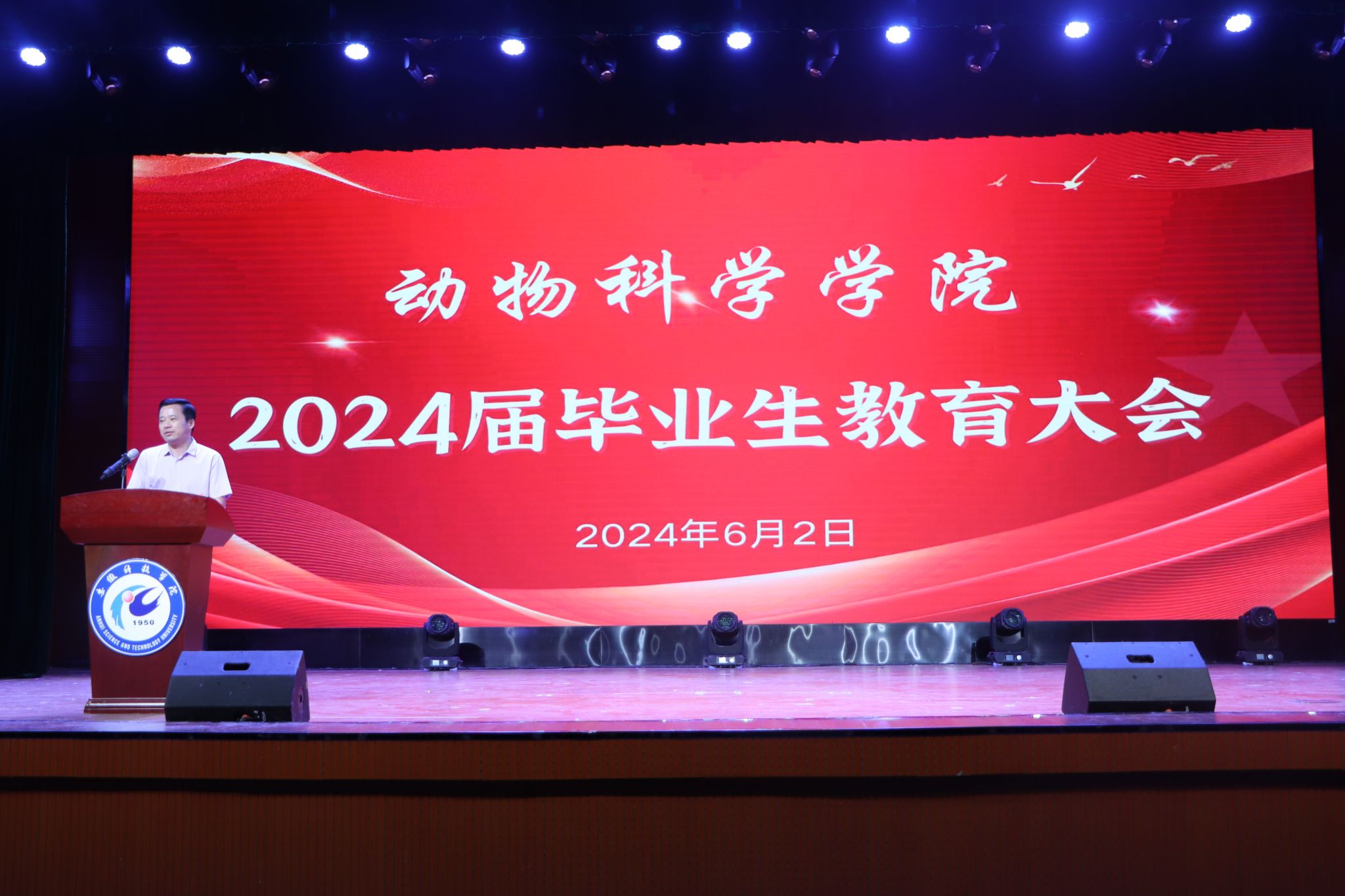 为切实做好毕业生毕业教育及离校服务各项工作,确保毕业生离校工作安全平稳有序,6月2日晚,动物科学学院2024届毕业生教育大会在大学生活动中心隆重召开,学院党委书记、副院长程斌、全体辅导员和2024届毕业生参会。会议由学院党委副书记、纪委书记汤帅主持。