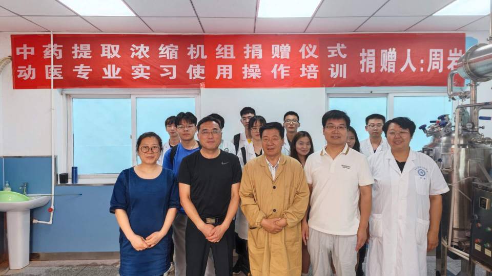 6月4日下午,动物科学学院举行中药提取浓缩机组捐赠仪式。浓缩机组由安科动保公司周岩老师捐赠。动物科学学院党委书记姚勇,党委委员、副院长贺绍君及部分教师出席仪式,动物医学2018级全体同学参加此次实习操作培训。