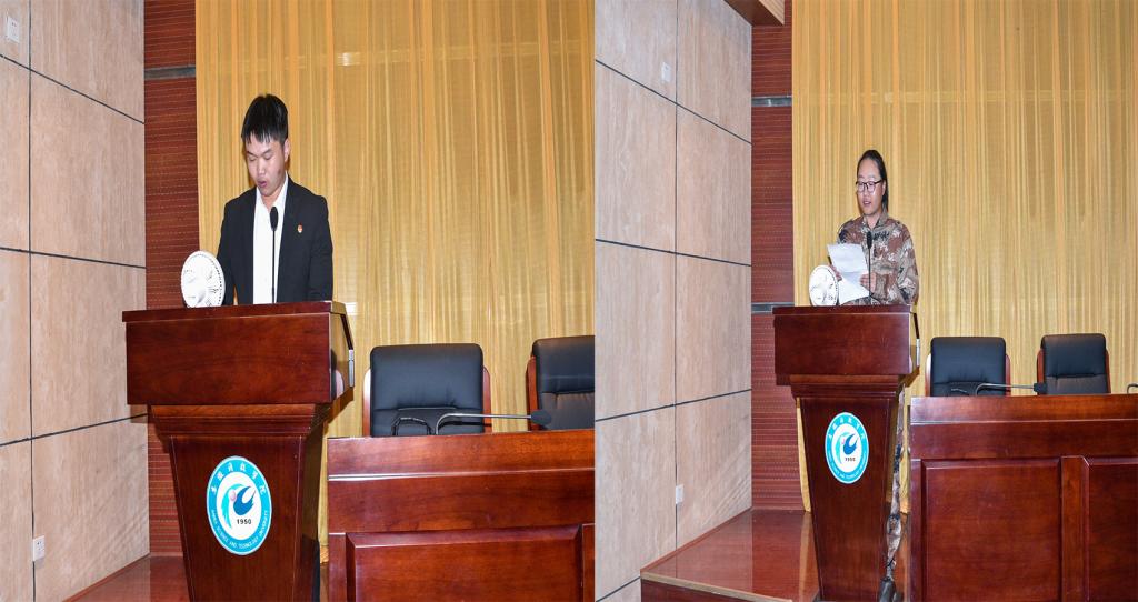 动科院基础兽医教研室主任、副教授李磊作为教师代表上台发言,校学生会主席团成员、19动医刘名同学,动物医学211班李唯一同学分别作为老生代表、新生代表上台发言。(特约通讯员:范雨梦 摄影:熊才旺 毕溢文 审核:汤帅)