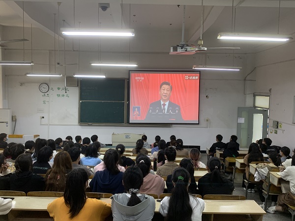 在学知楼A101、102、103教室,学院学生代表集体观看了开幕会直播。跟随习近平总书记重要讲话,同学们认真观看,深切感悟。通过观看开幕会,同学们了解了过去五年我国在经济、政治、社会、文化、生态环境等各个方面的发展状况,以及未来祖国的发展蓝图,接受了一次精神上的洗礼。
