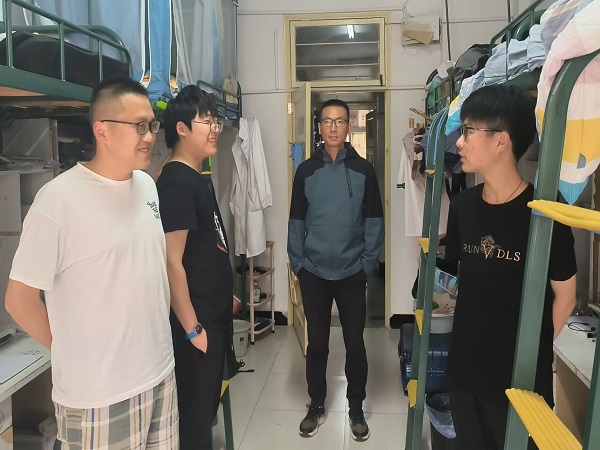 检查过程中,汤帅率领全体辅导员、各年级学生干部对学生宿舍乱拉乱接电线、阳台可燃杂物堆积、违规电器使用等可能存在的安全隐患进行了仔细排查,耐心细致地讲解了学校关于宿舍安全的相关规定,以及宿舍安全知识、火灾逃生、防范电信诈骗、防溺水等重点内容,同时针对宿舍存在的不足之处,现场提出了整改意见。汤帅强调,宿舍是大学生活的核心,不仅是生活场所,也是学习之地,宿舍的每一位成员都应树牢安全意识、责任意识,要用实际行动守护好自己的家园,要不断提高宿舍的文化品位,营造出踔厉奋发、勇毅前行的良好氛围。