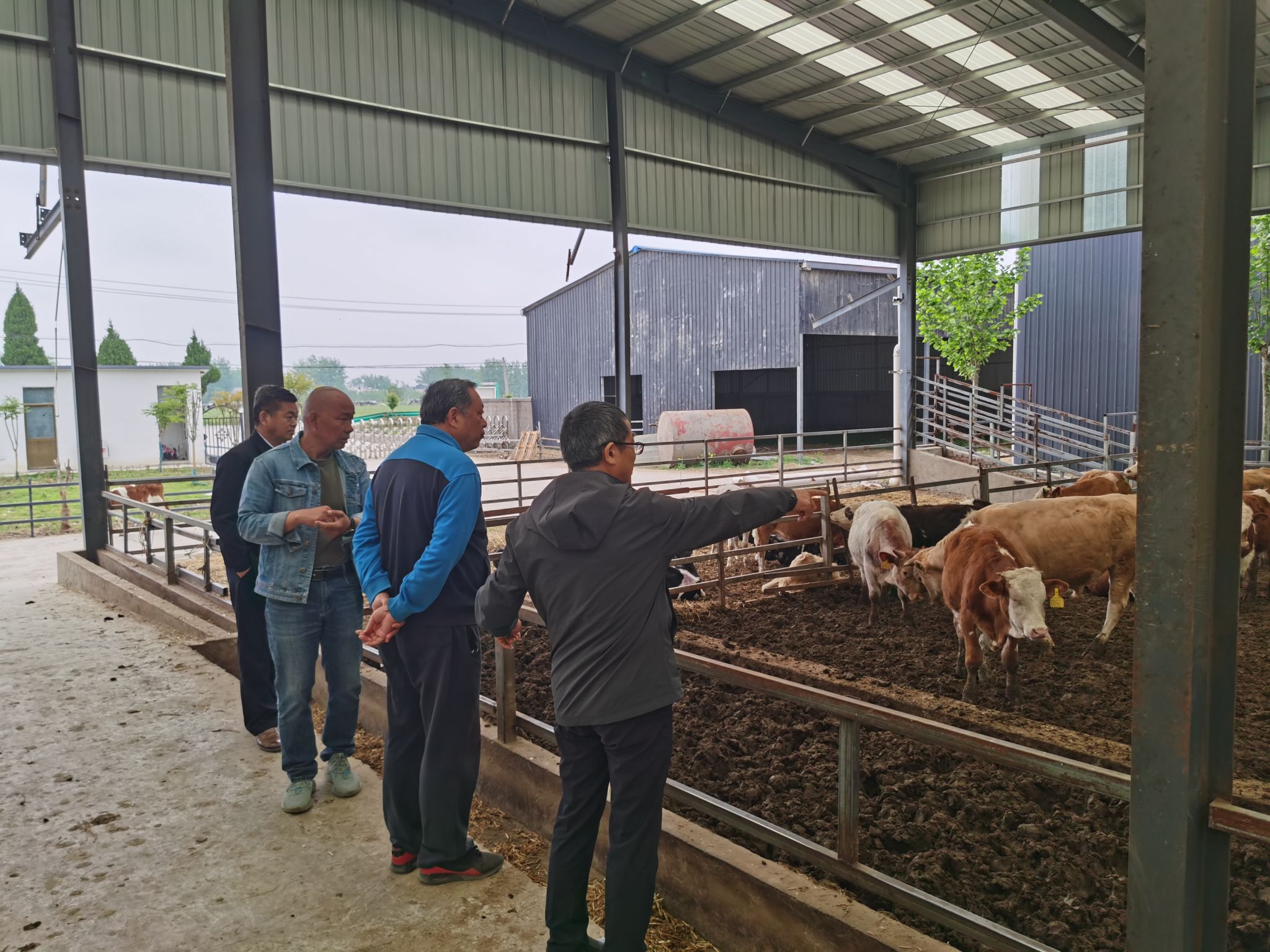 在开展技术服务的过程中,灵璧县畜牧兽医局领导详细介绍了县肉牛产业发展情况,双方共同探讨在省肉牛振兴计划的大背景下灵璧县肉牛产业高质量发展实现路径。本次技术服务先后深入灵璧县开元肉牛养殖专业合作社、灵璧禾牛养殖公司、灵璧久犇牧业公司、灵璧众帮养牛专业合作社等养殖企业进行实地察看,针对肉牛场目前面临的疾病防控、饲养管理、饲料配方等问题进行现场指导,此次技术服务得到各养殖企业的高度赞扬。最后,围绕定期为灵璧县养殖场开展现场技术指导,顾有方等三位专家和灵璧县畜牧兽医局达成一致意见。