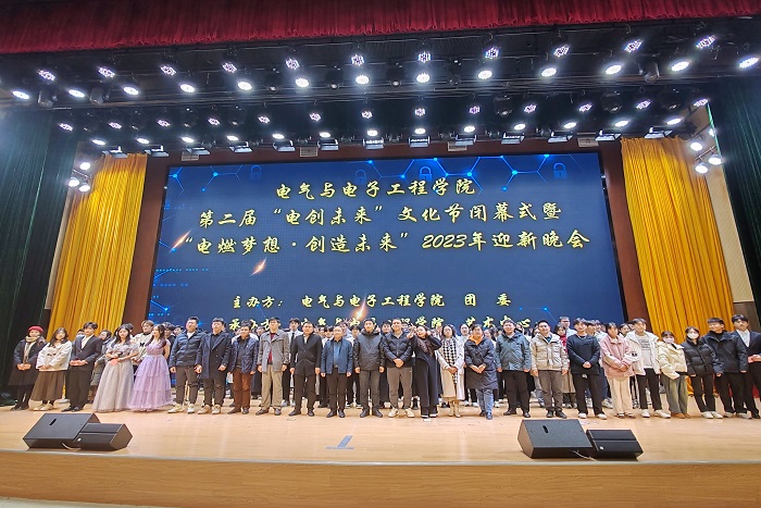 第二届“电创未来”文化节闭幕式暨“电燃梦想·创造未来”2023年迎新晚会的成功举办,旨在表彰为文化节作出突出贡献的同学、欢迎2023级新生入学,展示了电气与电子工程学院学子积极向上的精神面貌。盛会终有时,热情永不褪,希望2023级新生勇于拼搏、不懈进取,在大学四年里实现华丽蜕变。(特约通讯员:王延丽 摄影:洪思涵 谢露露 审核:尚磊)