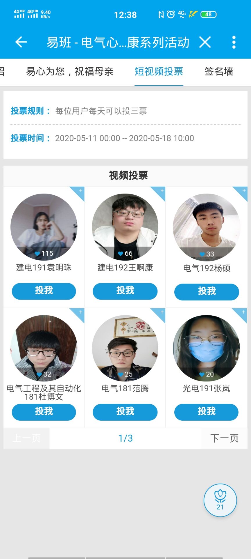 为进一步推动学院大学生心理健康教育工作,营造关注心理健康、维护心理健康、促进心理健康的浓厚氛围,更好地激发大学生心理健康自我教育意识,电气与电子工程学院于5月21日-5月31日在易班举办“第十五届心理健康月系列活动之疫情短视频分享大赛”活动,全体19级学生参加。