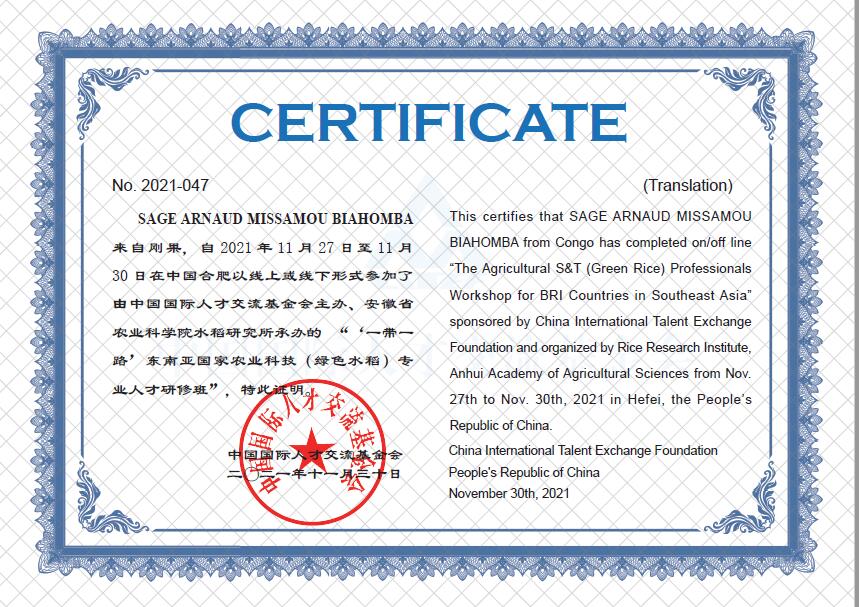 11月27日至30日,由中国国际人才交流基金会主办、安徽省农业科学院水稻研究所承办的一带一路东南亚国家农业科技(绿色水稻)专业人才研修班在合肥拉开帷幕。我校20级、21级农艺与种业专业外籍研究生线上参与研修班。