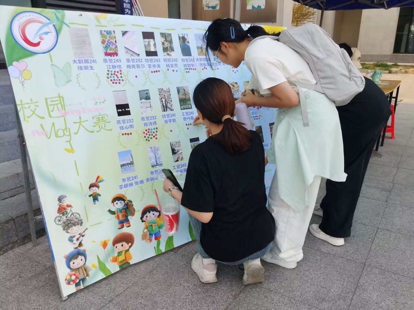 本次Vlog活动作品种类丰富多彩,主题涵盖学习、运动、才艺三大类。创作者们以独特视角记录校园生活,有清晨“早八”课堂的专注神情,有樱花树下的创意摄影,也有羽毛球场上的矫健身姿与吉他弹唱的悠扬旋律交相辉映,展现大学生们多元风采和朝气蓬勃的校园精神风貌。优秀作品评选采用采用“线上+线下”结合的方式,线下特别设置了主题投票展板,同学们可以亲手为喜爱的作品贴上小红花,实时更新的票数展示让投票过程充满互动乐趣。线上投票则通过抖音平台,将作品合集发布于易班E创官方账号,通过评论区中创作者的留言进入创作者主页观看完整作品,感受Vlog记录的魅力,最终评选出优秀作品30个。