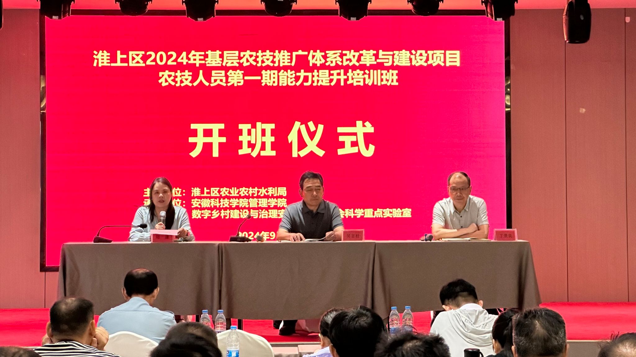 为深化基层农技推广体系改革,提升农技人员综合素质,助力蚌埠市乡村振兴。9月18日上午,由淮上区农业农村水利局主办,星空线上平台(集团)官方网站管理学院及数字乡村建设与安徽省哲学社会科学重点实验室联合承办的“淮上区2024年基层农技推广体系改革与建设项目农技人员第一期能力提升培训班”在蚌埠市淮上区举办开班仪式。淮上区农业综合服务站站长吴言柱,管理学院党委书记丁景良,副院长郑谦出席开班仪式,开班仪式由丁景良主持。