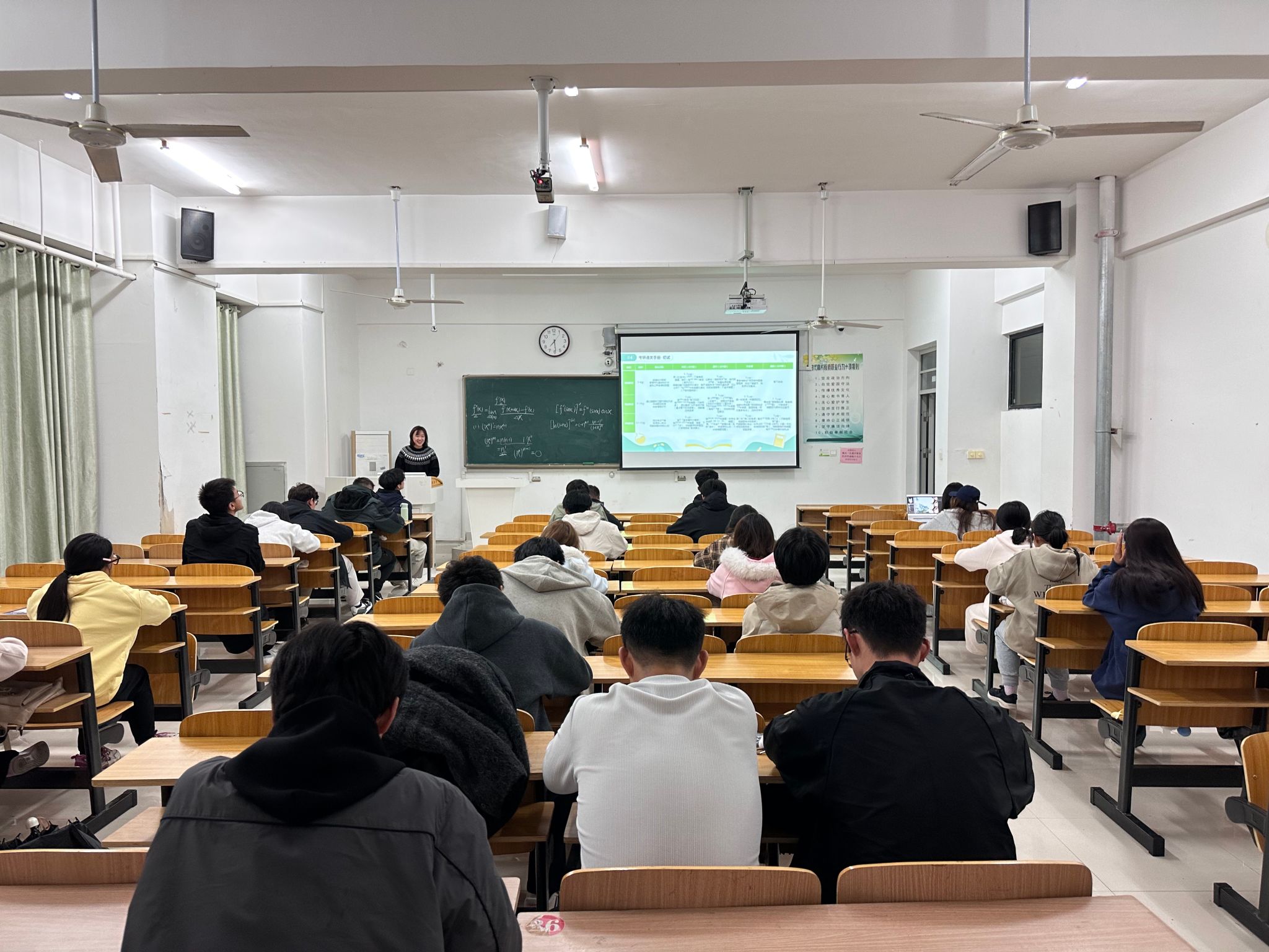 在互动答疑环节,新生们踊跃提问,问题涵盖“考研与学科竞赛如何兼顾”、“跨专业考研的可行性”及“如何高效安排每日作息”等现实关切。宣讲团成员一一给予细致解答,并强调“心之所向,何惧路长”,鼓励学弟学妹们尽早明确方向,在扎实积累中稳步前行。现场思维碰撞频繁,交流氛围融洽。