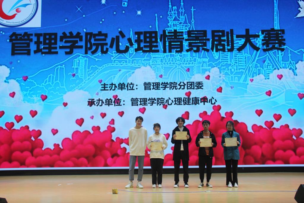 比赛中,《沟通》《心的距离》《暖暖的呵护》《贷价》《心灵的阳光》《拭去眼前的浮沉》《放下游戏》《一切都会好的》《谁的青春不迷茫》《转角遇真情》等情景剧在再现了大学生日常学习生活中遇到的人际关系处理、亲情的感召力、校园贷危害、网络游戏不良影响等,以上剧目皆由管理学院学生自编、自导、自演,节目内容符合学生心理成长的需要,表现形式上符合校园心理情景剧的常用技术要求。同学将自身的真实情感融入所扮演角色之中,用丰富多彩的表演形式,生动的肢体语言,将生活学习中遇到的问题还原再现,并在情景剧中予以解决。经过角逐,物流管理203班代表队勇夺桂冠。