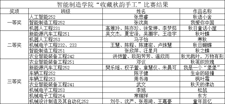 为丰富校园文化生活,助力学生舒缓心理压力、提升心理调适能力,12月3日,智能制造学院依托12·15心理健康月活动,成功举办“收藏秋韵”手工创意比赛。