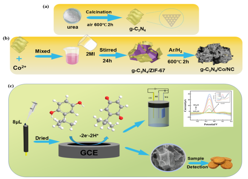 Fig.1 The g-C3N4/Co/NC mechanism for material preparation and detected TBHQ