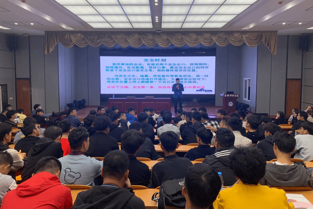 在校庆来临之际,为提升新生实验室安全意识,11月6日下午,化学与材料工程学院邀请江苏君源环保科技有限公司总经理屈俊勋开展《实验室应急安全分享与泄漏安全处置》主题报告会。会议由学院辅导员李潮升主持, 2023级部分学生参与。