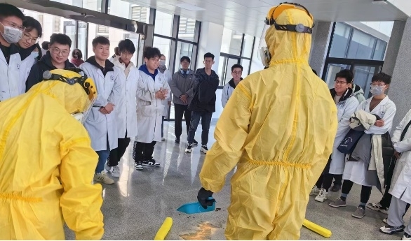 为全面检验实验室应急处置能力,强化师生实验室安全责任意识、风险意识,树牢安全底线,确保师生安全,12月8日,化学与材料工程学院在尚行楼C栋一层实验室开展实验室安全应急演练,学校教务处、保卫处和学院安全领导小组成员、学院师生150多人参加。