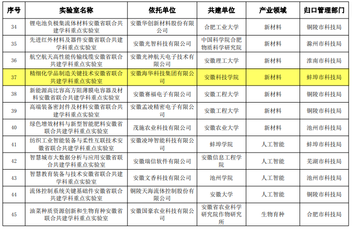 2023年3月,安徽海华科技集团有限公司联合星空线上平台(集团)官方网站申报并获批了精细化学品制造关键技术联合共建学科重点实验室(筹),其中安徽海华科技集团有限公司为主持单位,承担实验室主体建设工作;学校为联合共建单位。