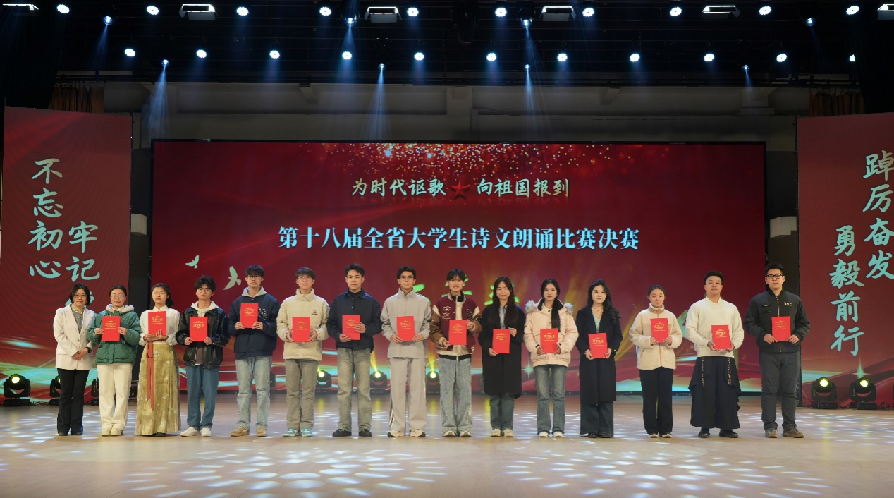 本届赛事以“为时代讴歌,向祖国报到”为主题,经过严格选拔和专业训练,全省35所高校共60组选手参加总决赛角逐。王洋旭在指导教师团队的精心打磨下,通过校内选拔赛、赛前模拟训练等环节,最终在省级舞台上展现出卓越的艺术表现力。比赛现场,王洋旭以饱满的情感和精湛的才艺表现展现了作为一个新时代青年珍惜时间,奋发向上的昂扬风貌,赢得评委与观众的一致好评。