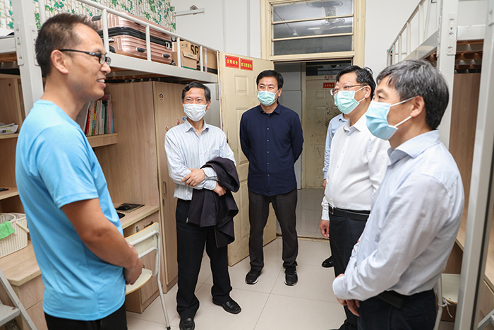 首批同学返校让寂静了几个月的校园,再次热闹起来。学生公寓、食堂、教学楼、临时留观点等重点公共区域张贴着引导和防疫标识。校领导深入现场看望学生和工作人员,查看准备工作情况;相关部门负责人和各学院党总支书记、辅导员早早来到了报到现场,接待报到学生、提供周到服务。