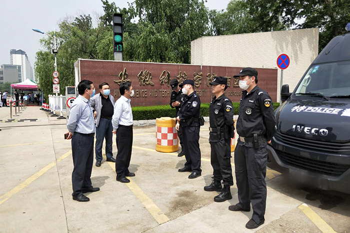 早上8点,学生处、保卫处、后勤保障部校医院以及各学院工作人员严阵以待,认真有序引导学生按照指定通道进入学校。