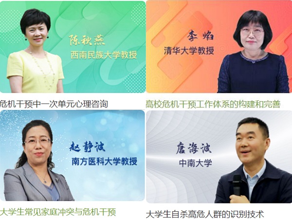 本次培训班主题为“携手同心、护航有你”。培训中,教育部普通高校心理健康教育专家指导委员会主任、北京师范大学林崇德教授、天津师范大学梁宝勇教授、北京大学第六医院唐登华教授、上海交通大学医学院附属精神卫生中心谢斌教授、天津大学杨丽教授、清华大学李焰教授、南方医科大学赵静波教授、西南民族大学陈秋燕教授、中南大学唐海波教授、华中师范大学周宗奎教授、北京师范大学乔志宏教授分别围绕《做好大学生安全的护航者》、《高校心理危机的预防》、《高校学生抑郁障碍的识别和应对》、《当前大学生的主要心理压力及其应对策略》、《自杀心理与行为的干预策略》、《高校危机干预工作体系的构建和完善》、《大学生常见家庭冲突与危机干预》、《危机干预中一次单元心理咨询》、《大学生自杀高危人群的识别技术》、《抗疫心理援助与危机干预》、《大学生积极心理品质提升经验交流》等主题做专题报告,对心理危机的预防和干预作了详实的解读与分析,培训专家报告既有理论深度,又有详实的案例,报告站位高,措施实,参训者学习后受益匪浅。