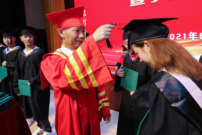 党委书记蒋德勤为龙湖校区毕业生授予学位,扶正流苏