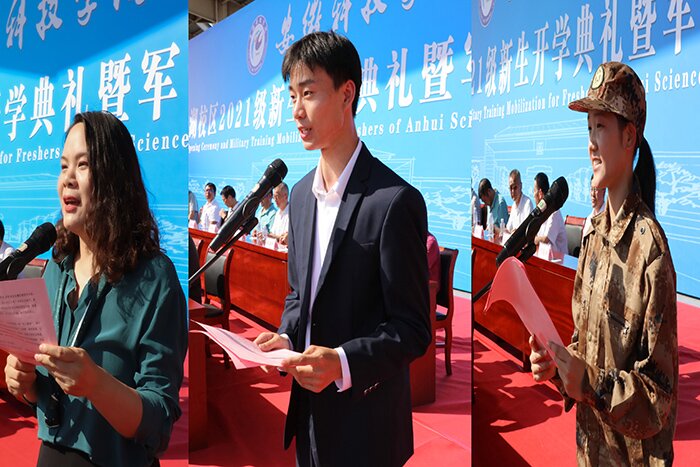 会上,教师代表、管理学院博士郑谦,在校生代表、国家奖学金获得者、安徽省优秀共青团员、建筑学院单新海,新生代表、化学与材料工程学院贾宇林先后发言。