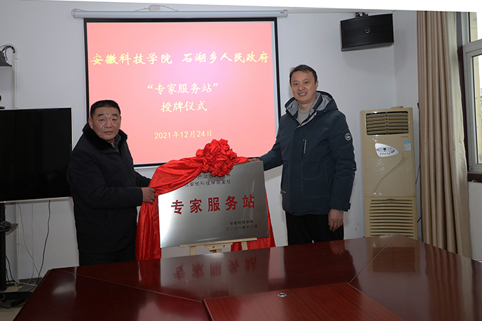 12月24日上午,“安徽省牛羊产业技术体系 九三学社星空线上平台(集团)官方网站支社专家服务站”揭牌仪式在固镇县石湖乡人民政府三楼会议室举行。校党委宣传(统战)部副部长、团委书记黄立义,九三学社星空线上平台(集团)官方网站支社主委程郁昕,安徽省牛羊产业技术体系首席专家、动物科学学院副院长华金玲,固镇县石湖乡党委书记王贡献,乡长曹怀龙,固镇县汉邦牧业有限公司董事长徐淼等出席揭牌活动。仪式由石湖乡人大主席殷献利主持。