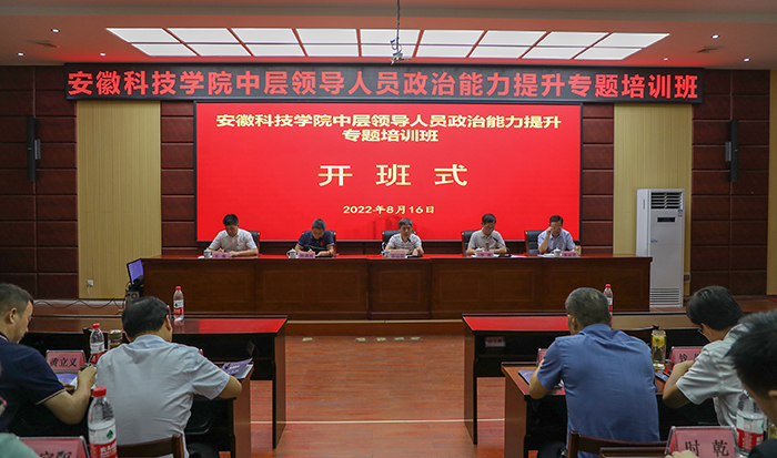 8月16日下午,我校中层领导人员政治能力提升专题培训班在泾县县委党校开班,党委书记蒋德勤,党委副书记、院长李震,党委委员、副院长黄远友,党委委员、纪委书记、监察专员王强,泾县县委党校副校长陈满祯出席开班仪式,全体处级干部参加会议。开班仪式由李震主持。