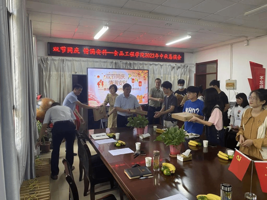 双节同庆,情暖人心。9月10日,校党委委员、副院长李升和深入食品工程学院参加师生中秋恳谈会,亲切看望慰问师生代表,与师生一起欢度中秋节和教师节。党委学工部部长、学生处处长黄立义,党委学工部副部长、团委书记张聪,食品工程学院党委书记付光玺、院长杜传来、副书记王广良、安徽省劳模吴晓伟以及各班优秀励志学生代表参加活动。恳谈会由付光玺主持。